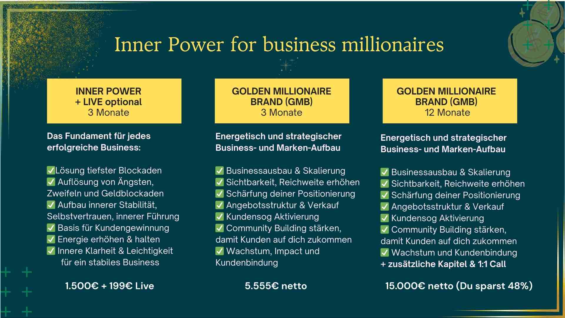 12 Monate inkl. Inner Power: 15.000€ netto (inkl. 1:1 Call)